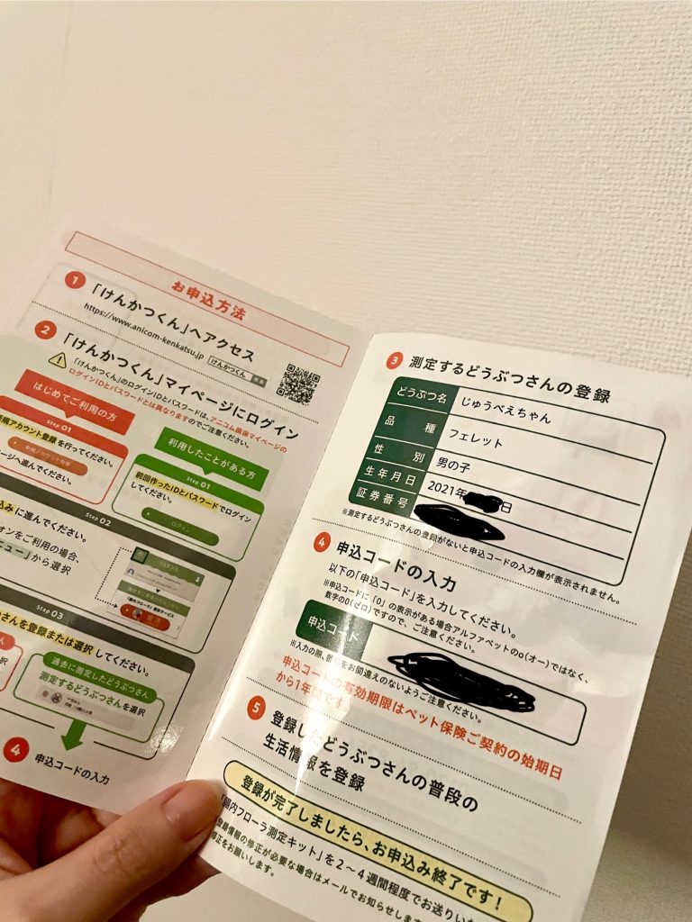 今年も「アニコム損保」さんのどうぶつ保険の付帯サービス「けんかつくん」による「腸内フローラ測定」の測定キット申し込みハガキが届きました。